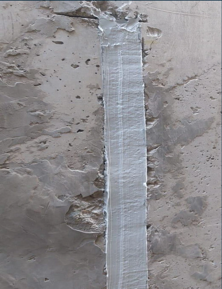 Opening of construction joint in U/V shape approx. 25X25mm in width and depth